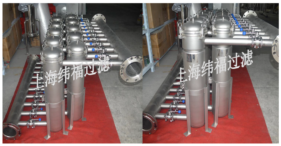 袋式過濾系統(tǒng)也稱串聯(lián)過濾器,為連續(xù)不停的過濾工況而設(shè)計。 過濾器系統(tǒng)由2個或者更多的單袋過濾器單元組成。 過濾器系統(tǒng)可以采用卡箍型的單袋過濾器進行粗過濾器、側(cè)入式單袋過濾器進行多種工況的過濾,或者采用頂入式面對更加嚴(yán)格的工況過濾。 過濾器系統(tǒng)節(jié)省空間和易于擴展,靈活性強,每個過濾器單元是獨立存在的,每個過濾器更換濾袋的工作也是獨立的,因此可以實現(xiàn)不停機工作。