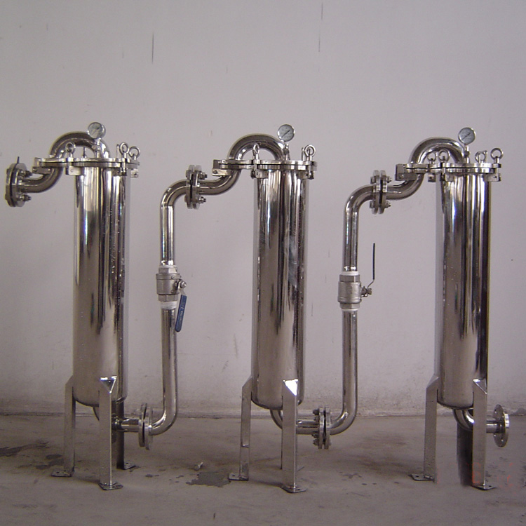 本設(shè)備全部采用不銹鋼SUS304/316L制造,濾筒內(nèi)裝有不銹鋼濾網(wǎng)和濾網(wǎng)支撐籃;頂部裝有放氣閥,供過濾時(shí)排放濾器內(nèi)空氣作用。上蓋與濾筒連接采用快開式結(jié)構(gòu),更方便清洗(更換)濾網(wǎng),三只可調(diào)節(jié)式支腳可使濾器平穩(wěn)放置在地面上。連接管路采用活接或卡箍連接方式,進(jìn)出料閥門采用三通球閥啟閉,操作靈活方便,無料液泄漏更衛(wèi)生。管道接頭采用脹合連接,經(jīng)0.3Mpa水壓試驗(yàn),三通外螺紋旋塞啟閉靈活,該設(shè)備結(jié)構(gòu)緊湊,操作方便,維修簡單。 此外:可將兩個(gè)單筒過濾器組裝在一個(gè)機(jī)座上,清洗過濾器時(shí)不必停車,保證其連續(xù)工作,適用于不停車生產(chǎn)線過濾裝置。